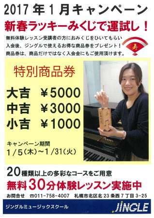 無料体験レッスンを受講頂いた方全員にジングルラッキーみくじを引いてもらいます。