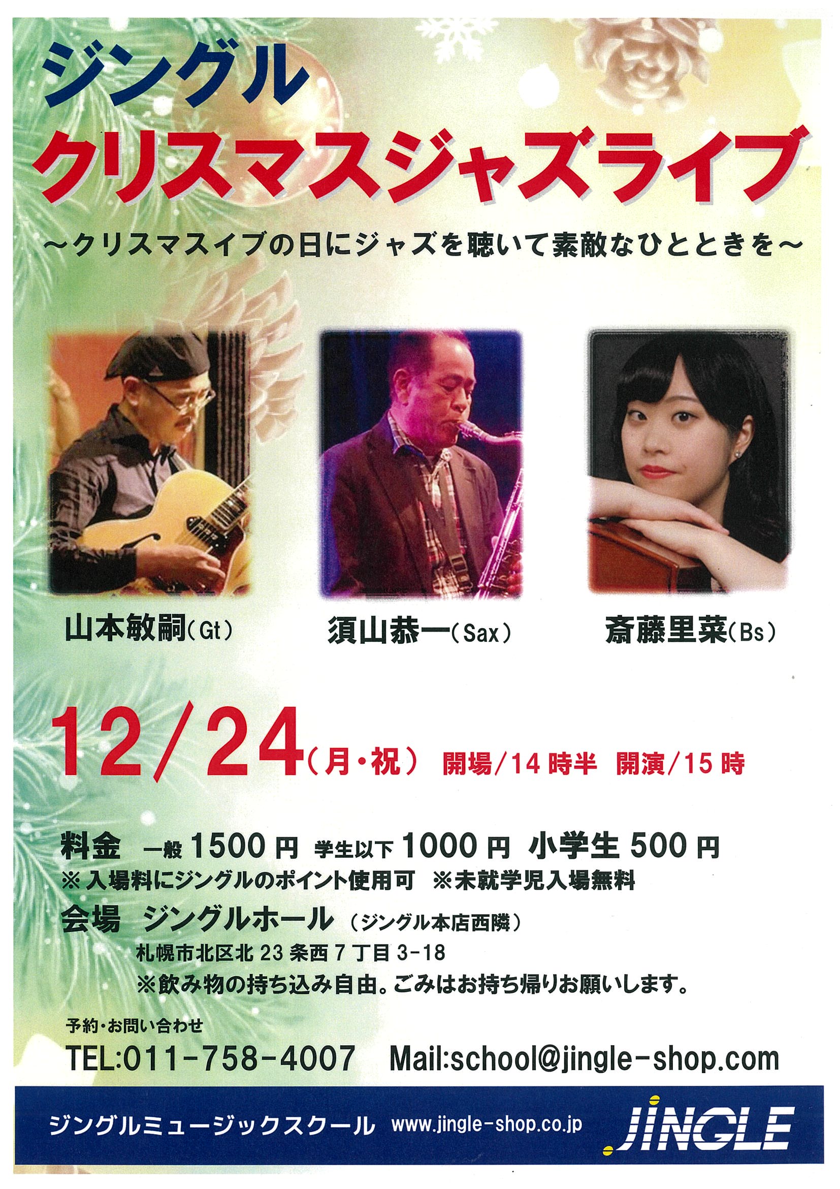- 2018.12.10 school12月24日クリスマスジャズライブ開催
