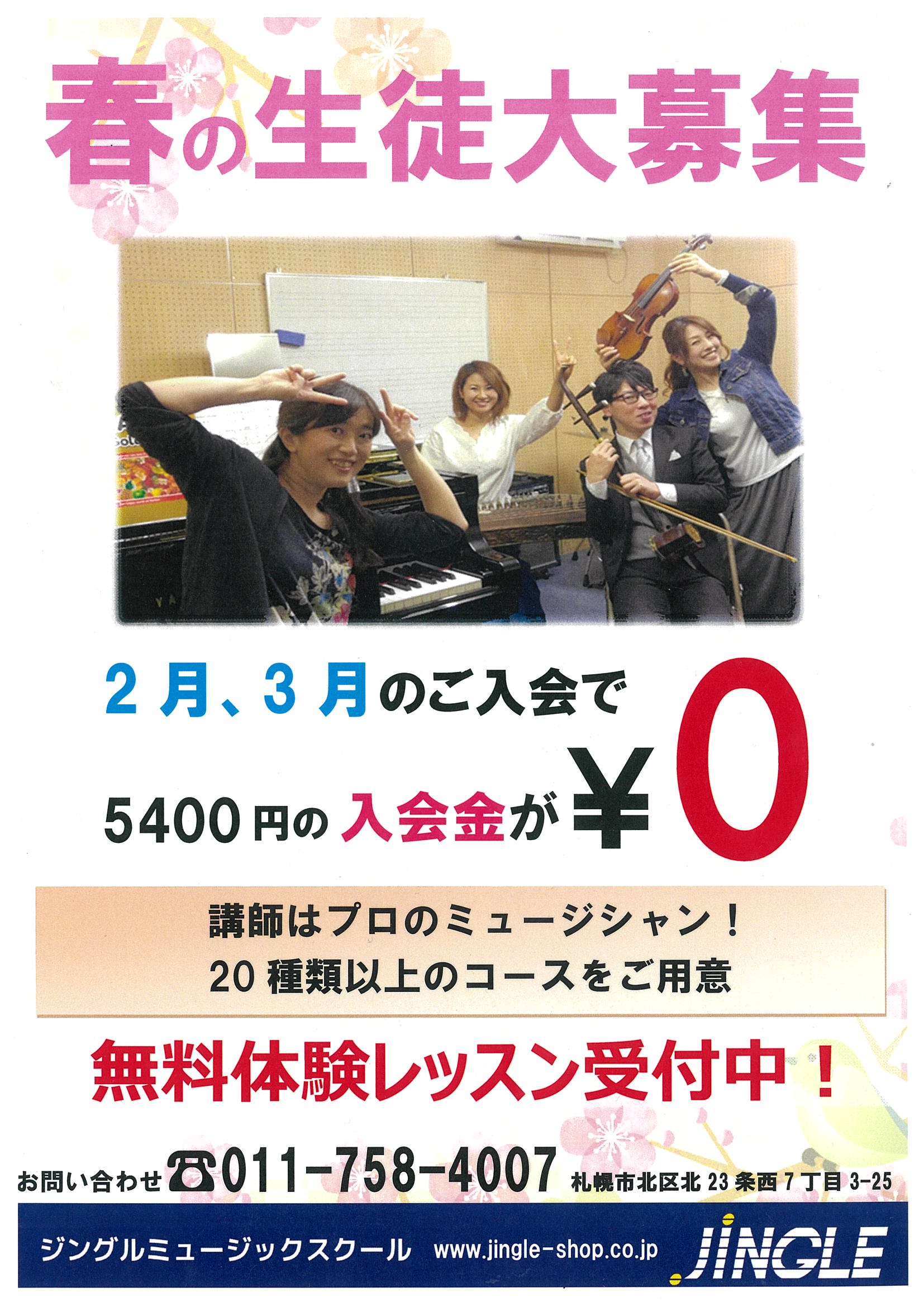 - 2019.2.1 school2,3月入会金無料キャンペーン