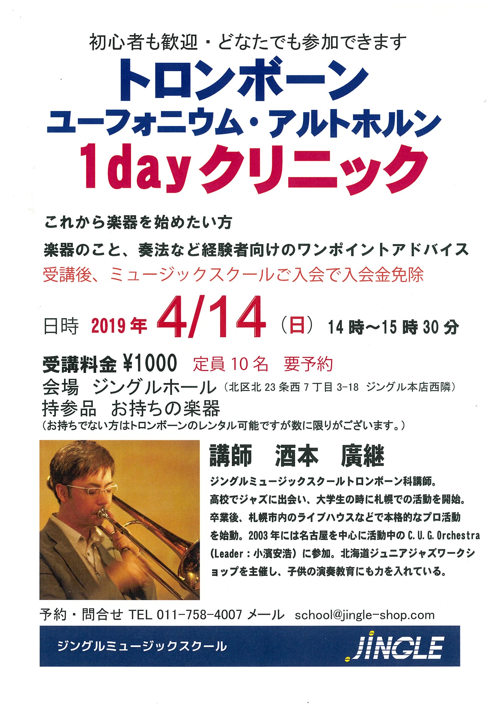 - 2019.3.12 school4月トロンボーンクリニック開催