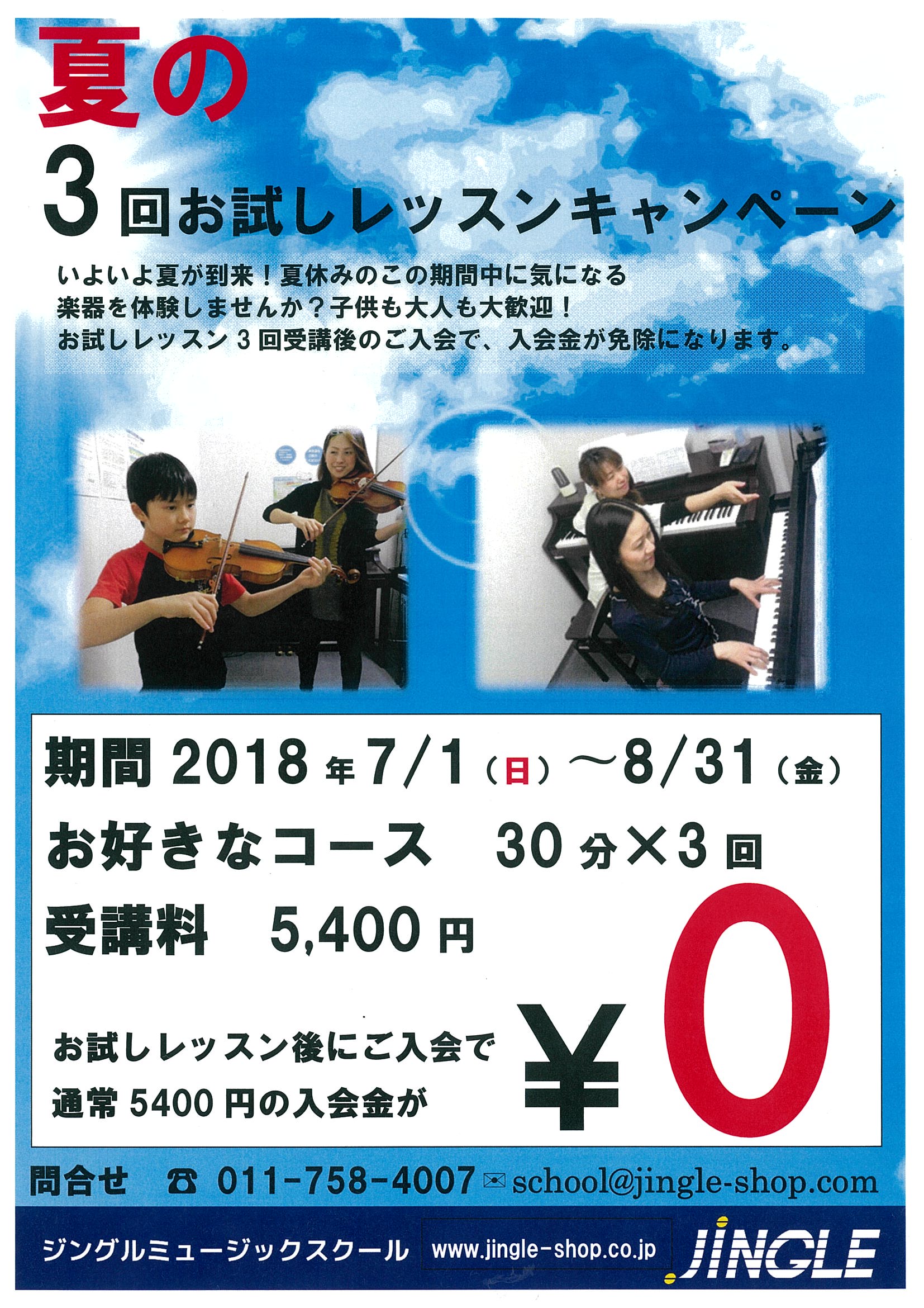 - 2018.7.1 school7月・8月お試しレッスンキャンペーン