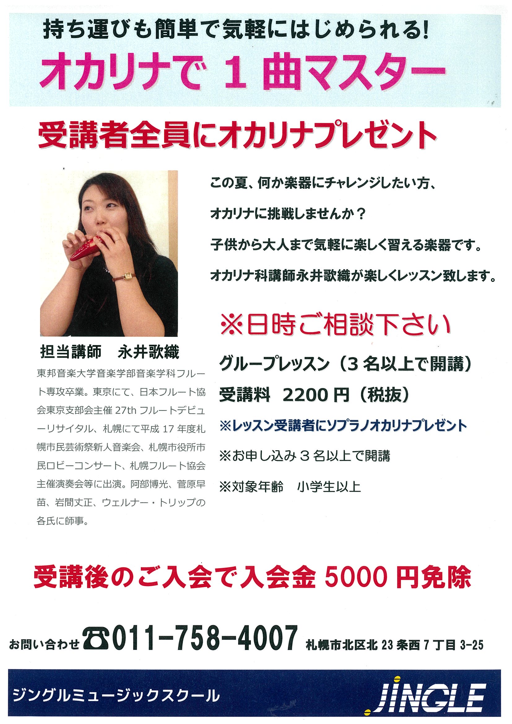 - 2018.7.31 schoolオカリナコース1曲マスター講座開催