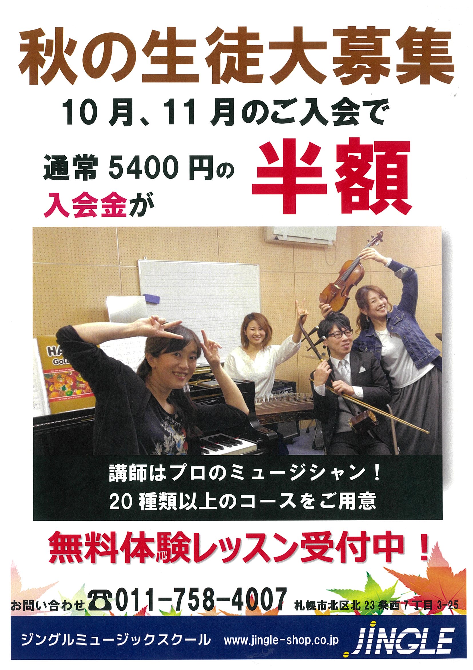 - 2018.10.2 school10、11月入会金半額キャンペーン