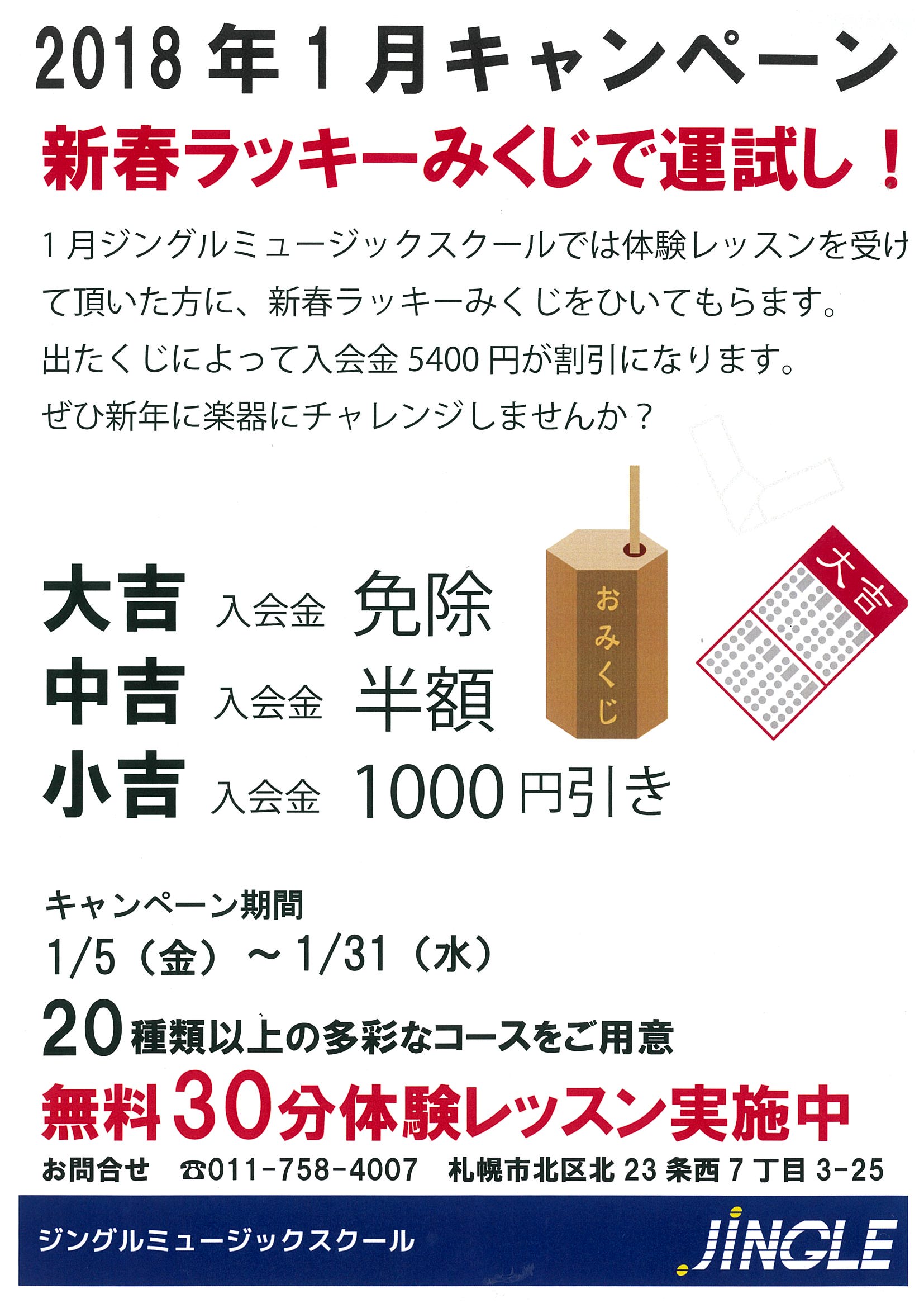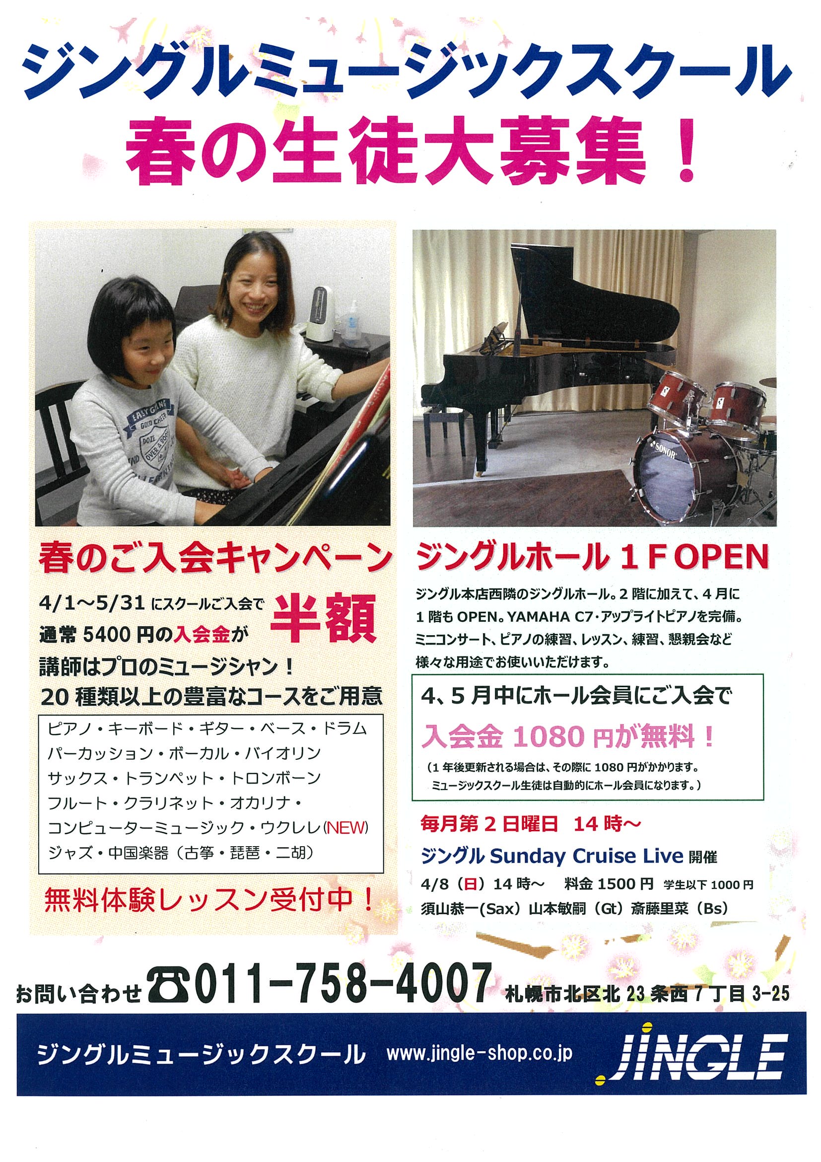 - 2018.3.31 schoolジングルミュージックスクール春の生徒募集!