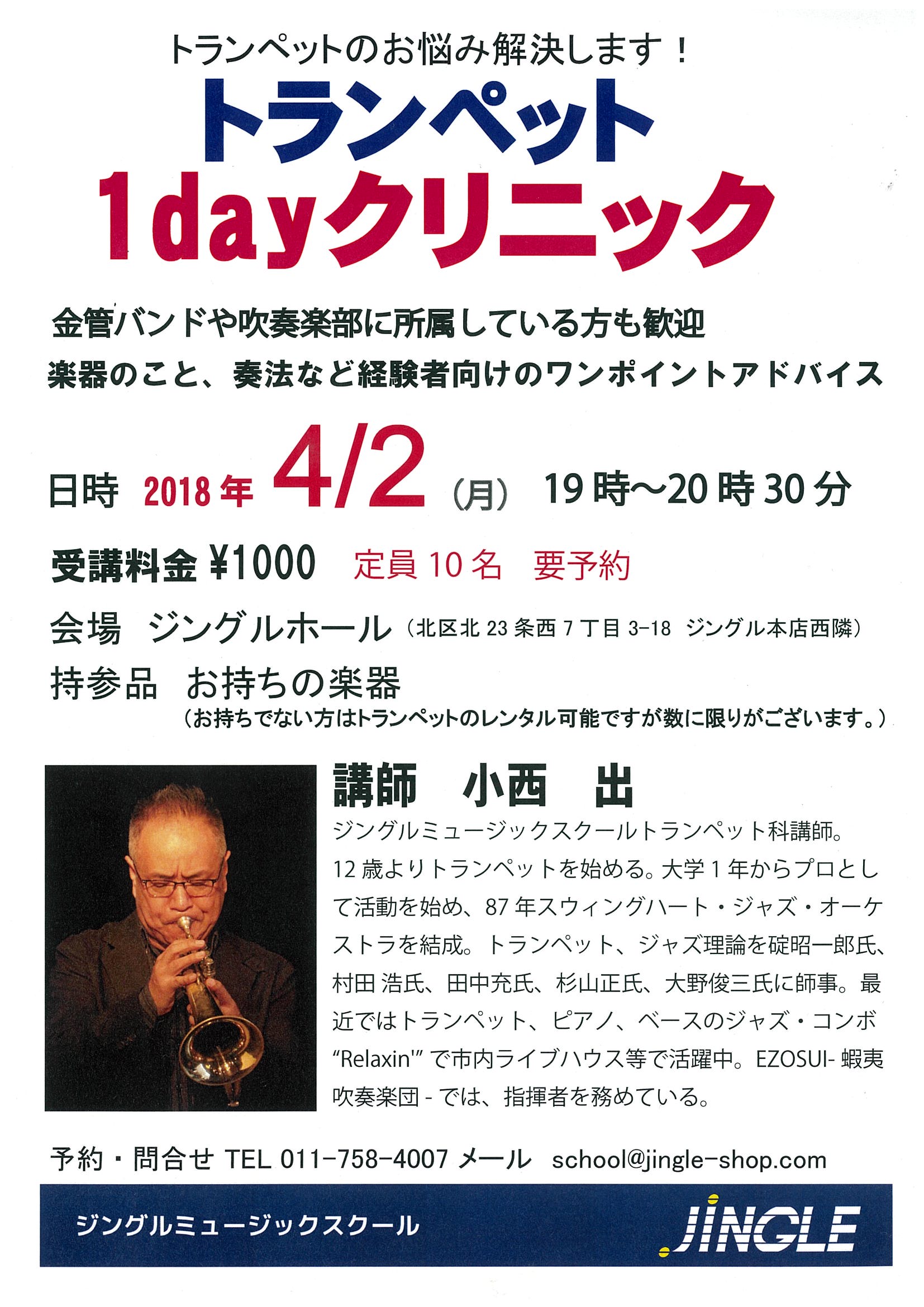 - 2018.3.9 school4/2(月)トランペット1DAYクリニック開催