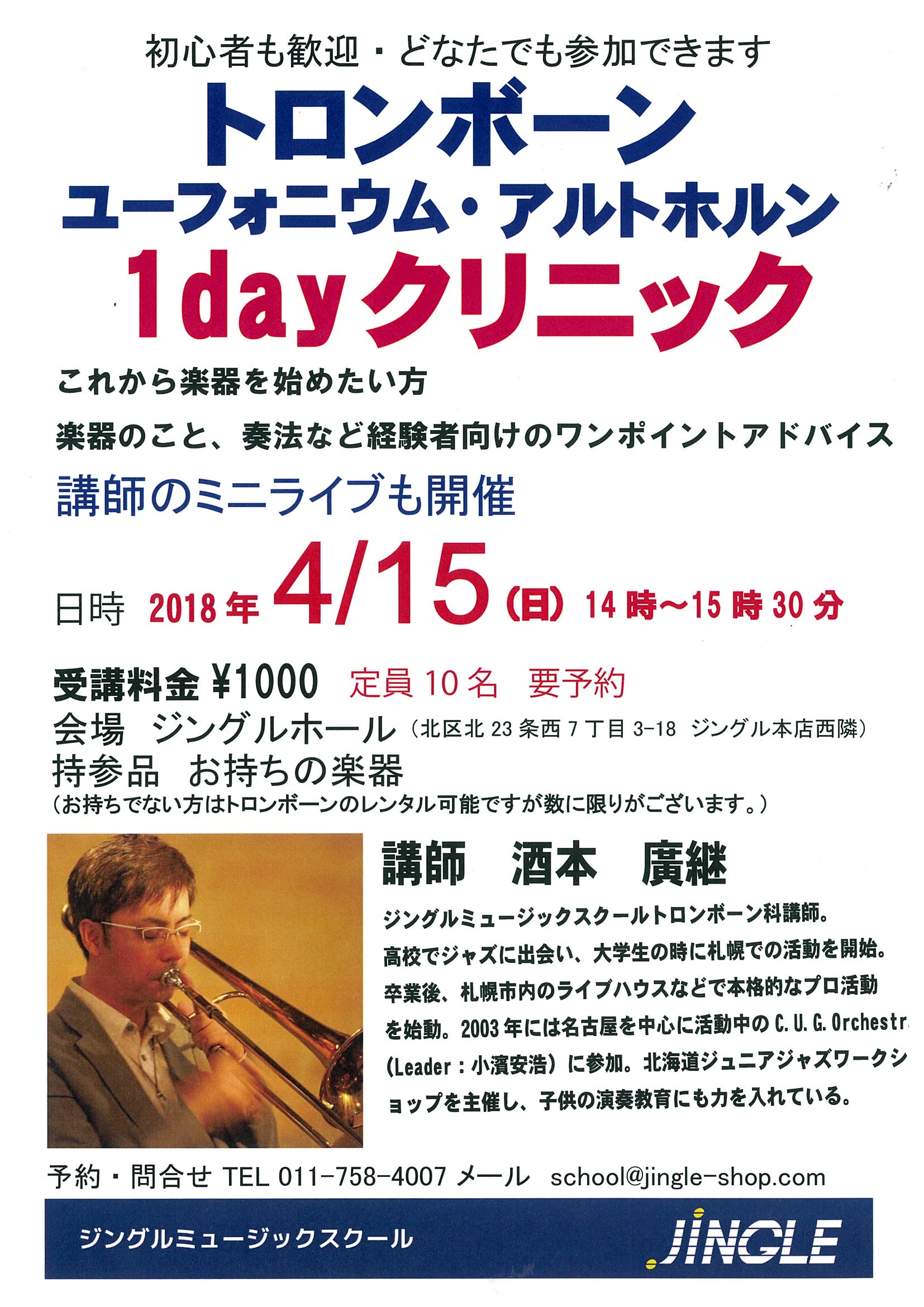 - 2018.3.9 school4/15(日)トロンボーン・ユーフォニウム・アルトホルン1DAYクリニック開催