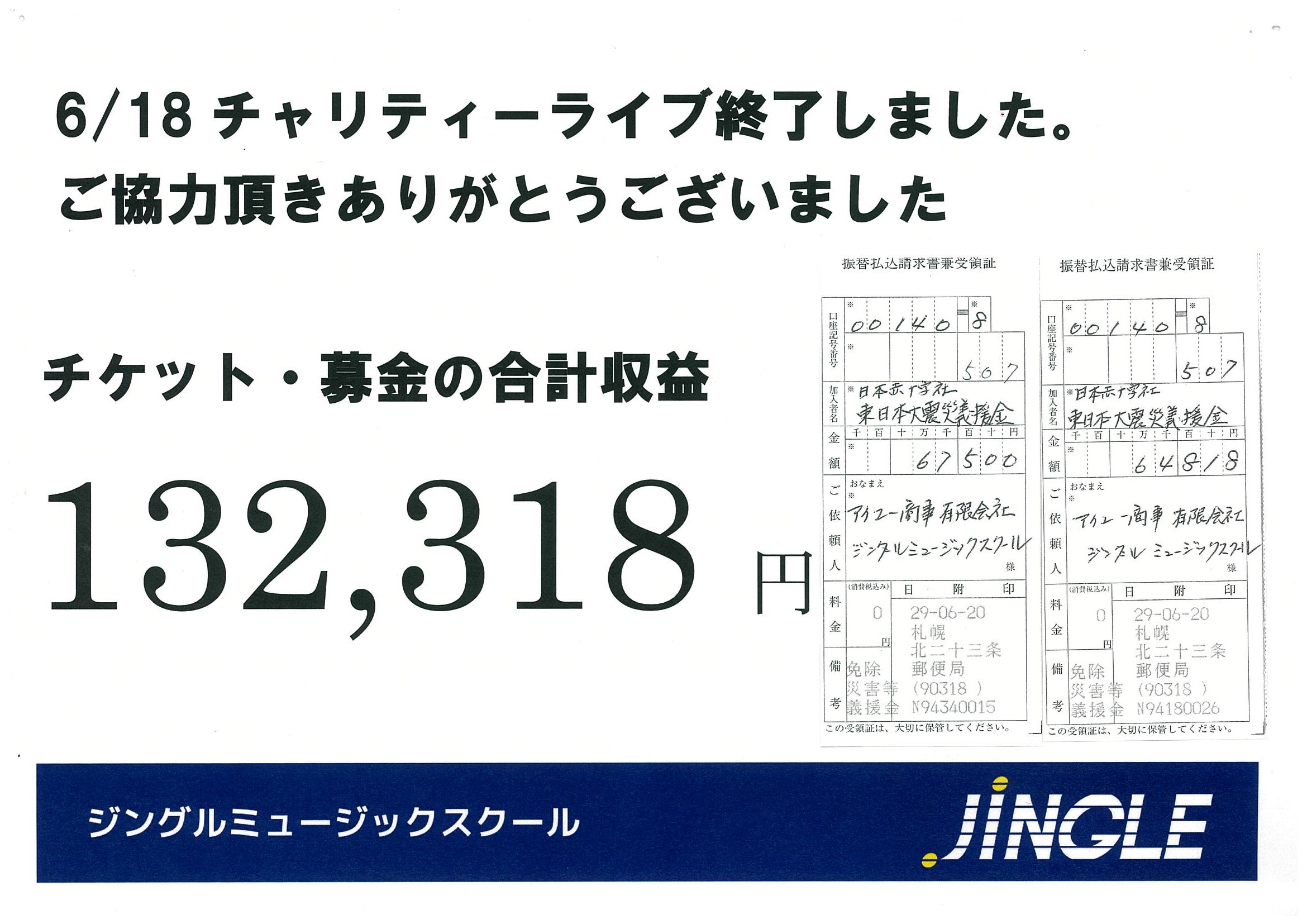 - 2017.6.27 全体第7回東日本大震災復興支援チャリティーライブ終了しました