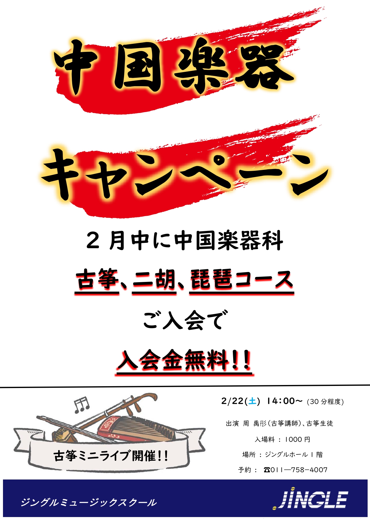 - 2025.1.31 school2月中国楽器科キャンペーン【2月22日古筝ライブ中止】