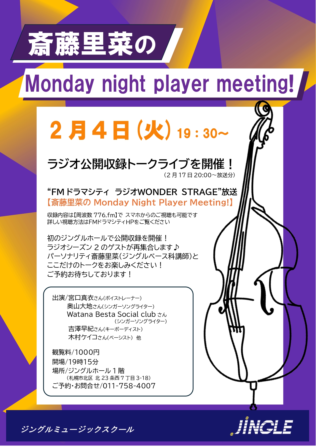 - 2025.1.31 school2月4日ラジオ公開収録行います!斎藤里菜のMonday night player meeting!