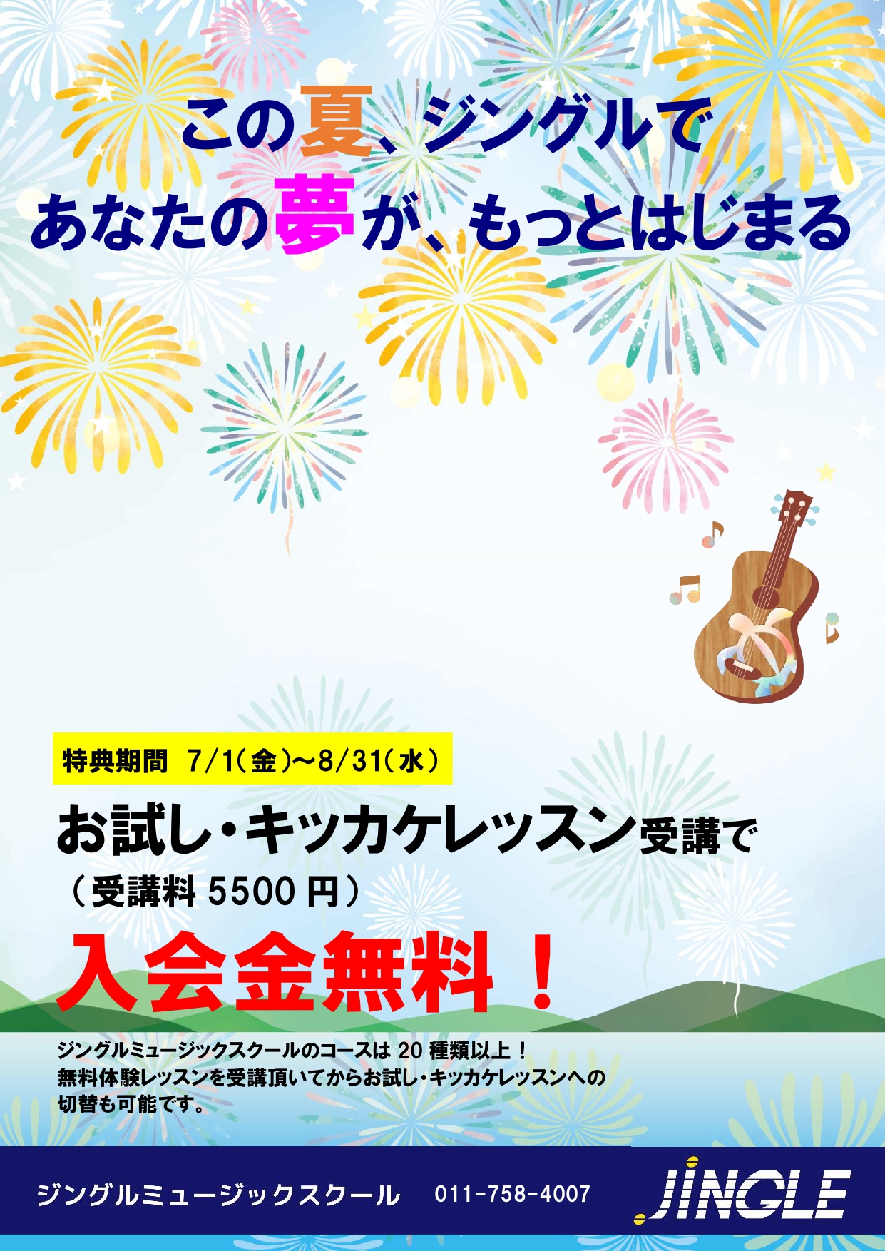 - 2022.6.30 school7、8月お試し・キッカケレッスン受講で入会金無料キャンペーン