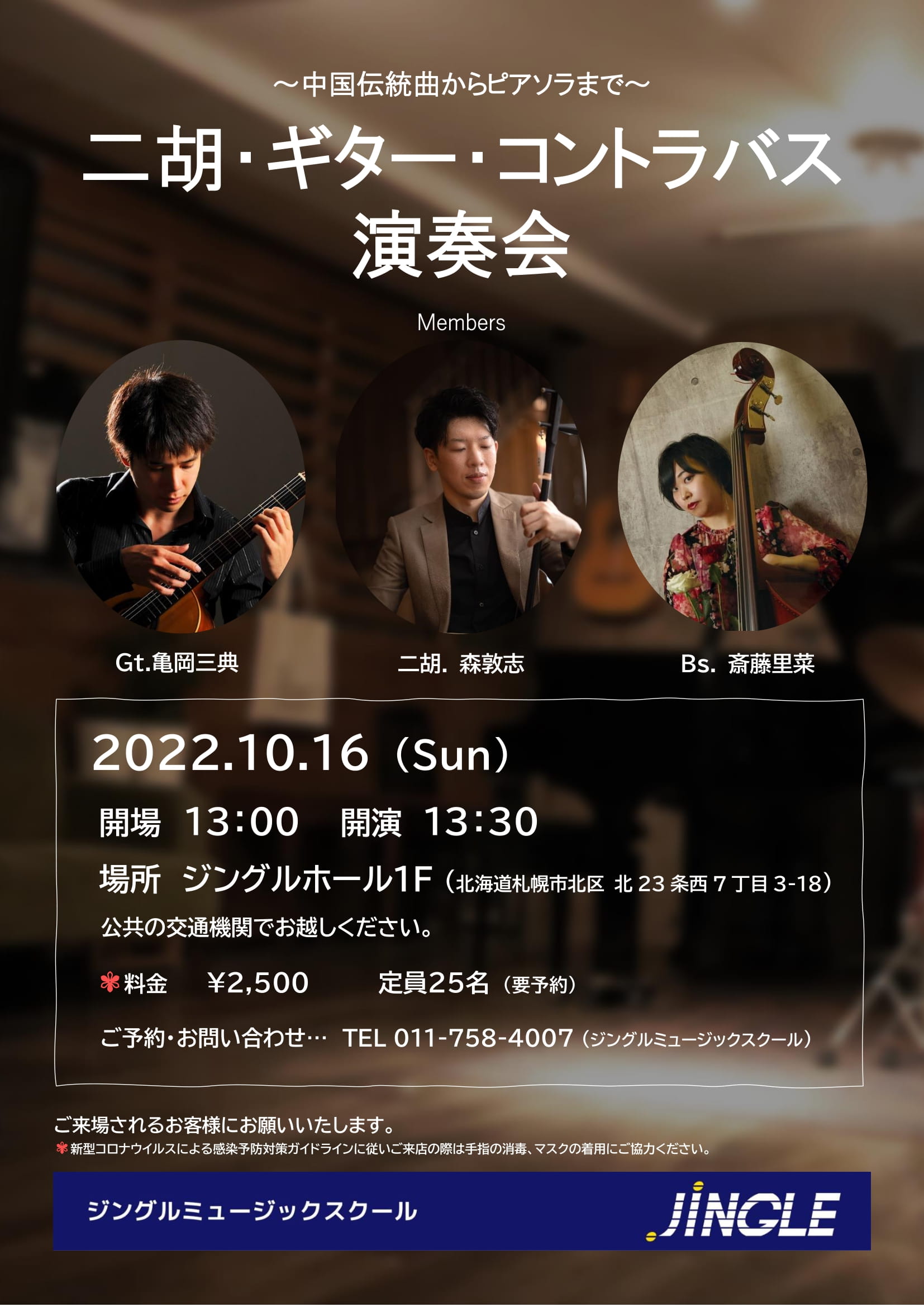 - 2022.9.21 school二胡・ギター・コントラバスライブジングルホールで開催